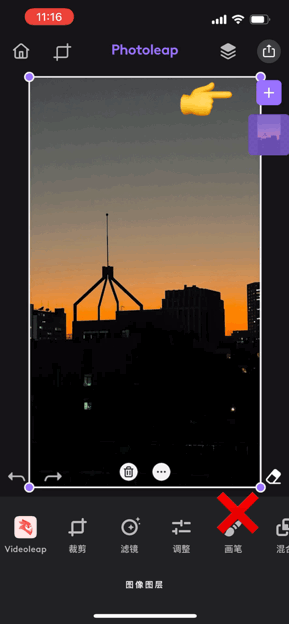 点击橡皮擦,适当缩放画笔大小,双指放大背景图,在文字图层上擦除与建筑的重合部分。