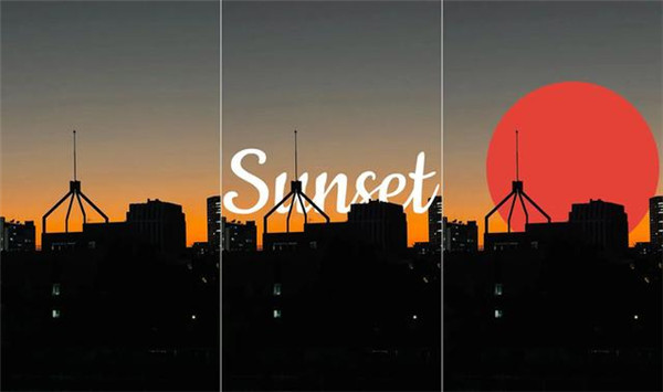 当然,并不一定所有遮挡部分都擦除才好看,比如我们将「Sunset」最后一个字母完整保留,建立「画笔」图层加几只绕飞的鸟,也许会带来出其不意的效果。