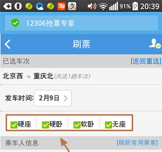 uc12306抢票专家需要运行在android2.0以上平台,软件拥有便捷的购票体验,用户可以使用UC浏览器进入12306抢票专家,选择乘车时间和乘车区间,即可查询相关车次的余票情况。如果发现有自己所需的车票,点击预定即可跳转到订单处理页面,可以手动输入乘车人信息,也可以从已保存12306的常用联系人中选择乘车人信息。整个过程便捷而友好,用户可以很简单的完成所有流程的操作。