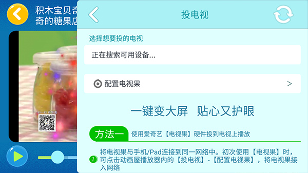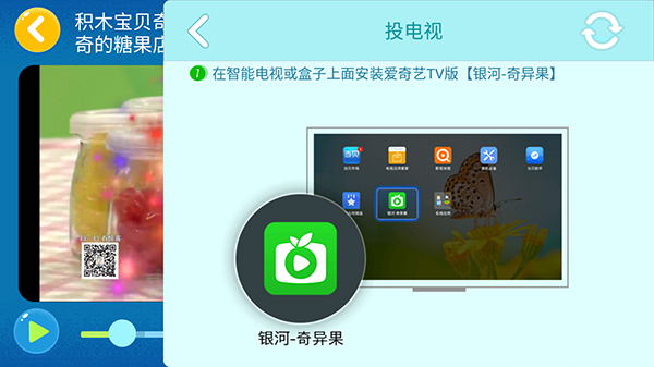 也可以在投屏设备中安装爱奇艺官方投屏应用银河奇艺果进行投屏