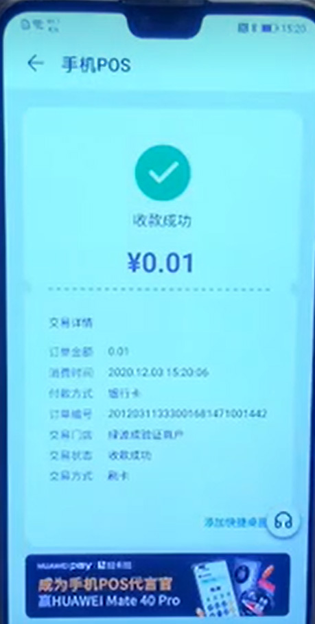 用户注册后就像用实体pos机一样,用手机感应卡片就可以成功刷卡