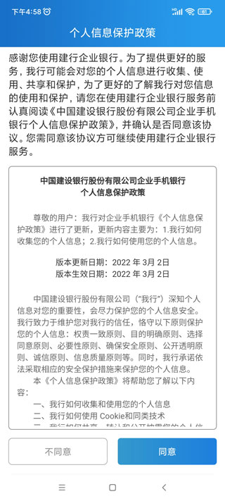 1、下载安装好中国建设银行企业手机银行,运行软件,同意协议;