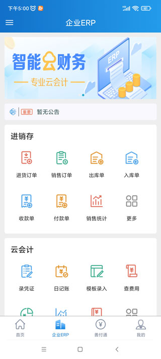 3、点开企业ERP,可以看到有进货订单、销售订单、出库单、入库单、收款单、销售统计等;