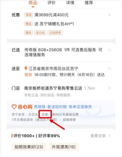 不显示则代表商品不支持自提或附近无自提点