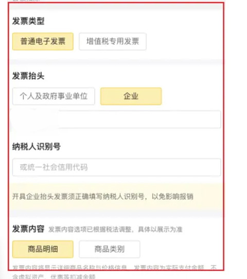 5、然后重新选择下发票类型,以及重新填写下发票信息即可