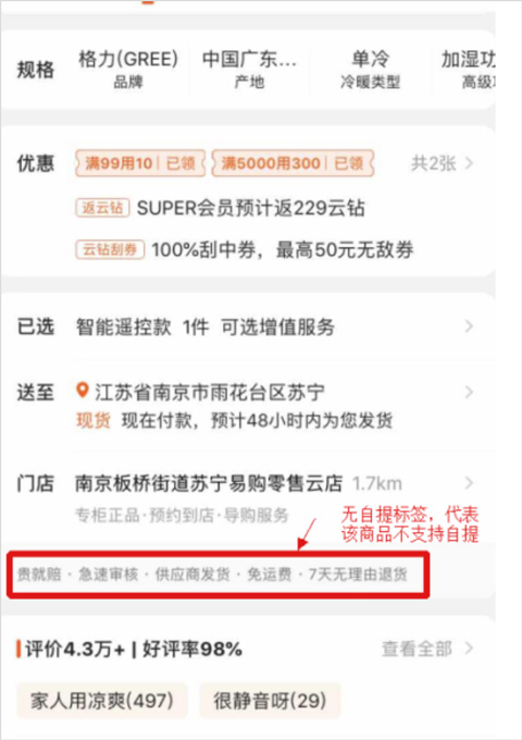 备注:苏宁国际商品、供应商/商家发货商品不支持自提哦