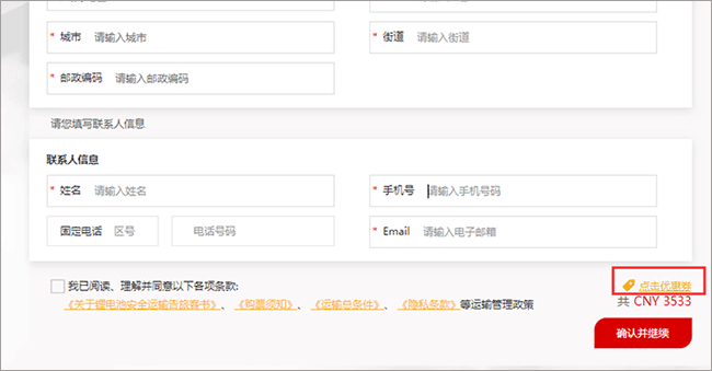 2、在跳转后的页面中输入20位数字的代金券券号和12位数字的代金券验证码(如果收到的验证码不足12位数字,须在第一位数字前添“0”补足12位数字),然后点击绑定优惠券按钮,完成绑定。
