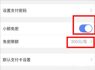 8、OK,小额免密已打开,系统默认免密限额为每笔300元。