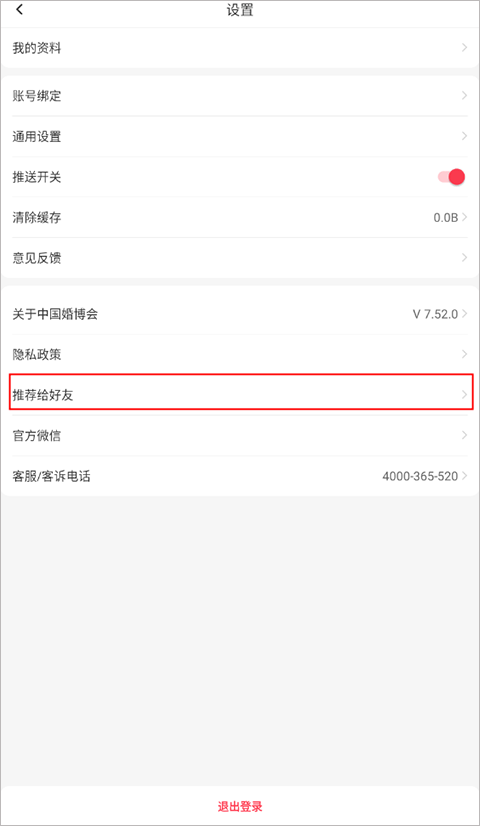 2、在设置界面内选择其中的“推荐给好友”即可邀请好友啦。
