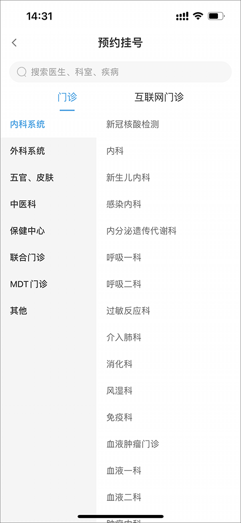 2、选择自己想要就诊的医生、科室、疾病进行挂号等。