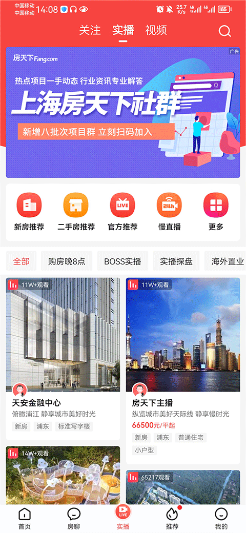 4、在实播界面中,用户还可以通过各种直播来更为直观的了解该楼盘的介绍