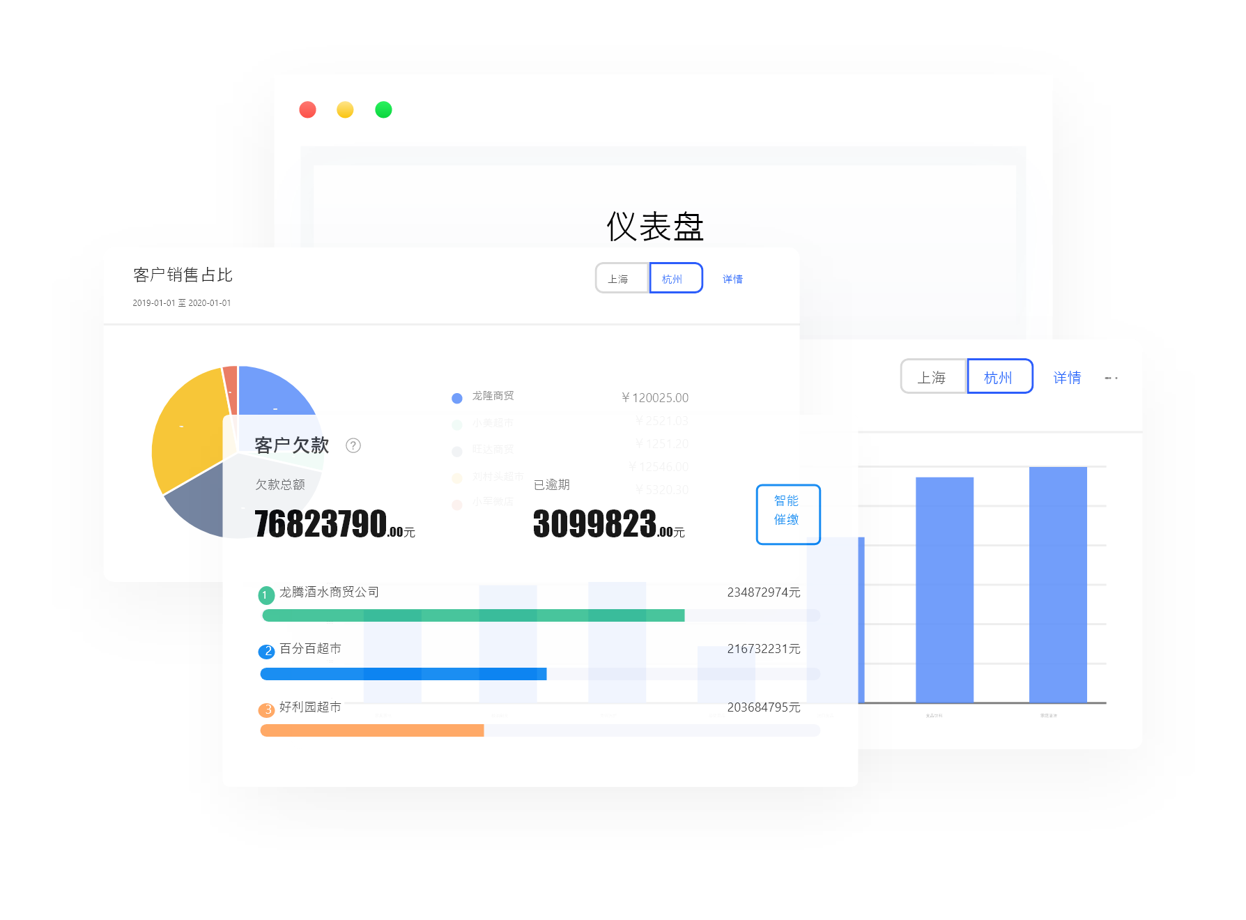 可进行客户信用度管理、欠款逾期管理,支持一键发送账单核对,搭配营销短信,还能智能催收。