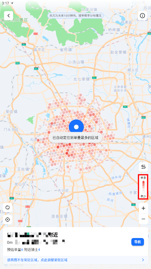 2、这里可以看到随着颜色加深,单量就越多而骑士少,非常清晰;