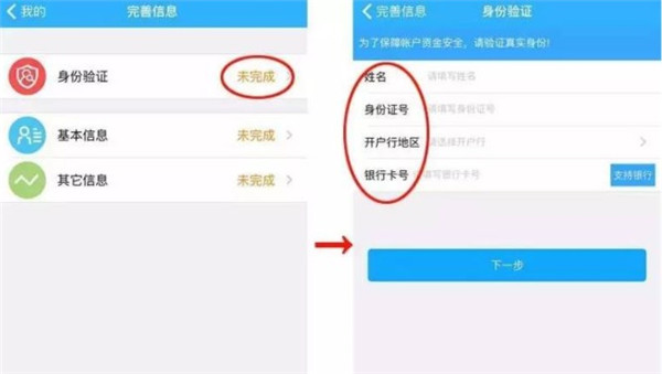 2、身份验证主要包含三方面的信息,分别是:姓名、身份证号、银行卡信息(开户行地区、银行卡号)其实,这就是一个实名制的过程,毕竟借贷双方完全不需要见面,资料上的坦诚相见还是有必要的,何况现在连做网络主播都要实名制了呢。