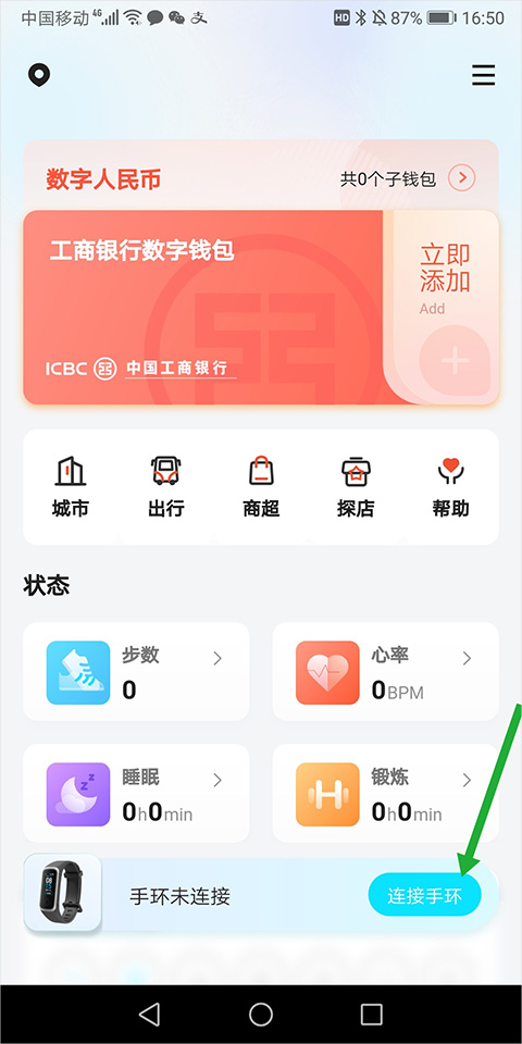 通过App将工商银行数字钱包添加到拉卡拉手环,即可体验使用数字人民币进行支付。