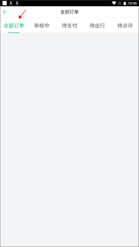 (1)用手机号和验证码注册并登录软件账号之后,从【首页】切换到【我的】界面,在这里你会看到“我的订单”显示的各种状态,像待支付、确认中、待出行等,点击红色箭头指向的“全部”。