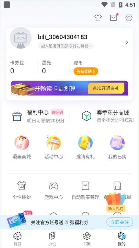 具体消费请在哔哩哔哩漫画app中进入【我的】页面中点击页面上部的【开通畅读卡】进行查阅