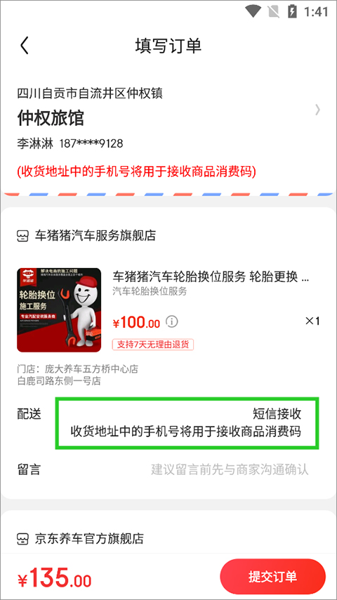6、接着提交订单支付,之后用户手机上会接收到商品消费码,扫码即可完成预约