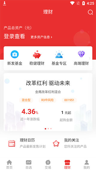 5、理财页面:新发基金、稳健理财、基金专区、高端理财;