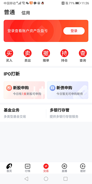 4、交易页面下可以进行普通委托交易登录,以及信用融资融券交易登录