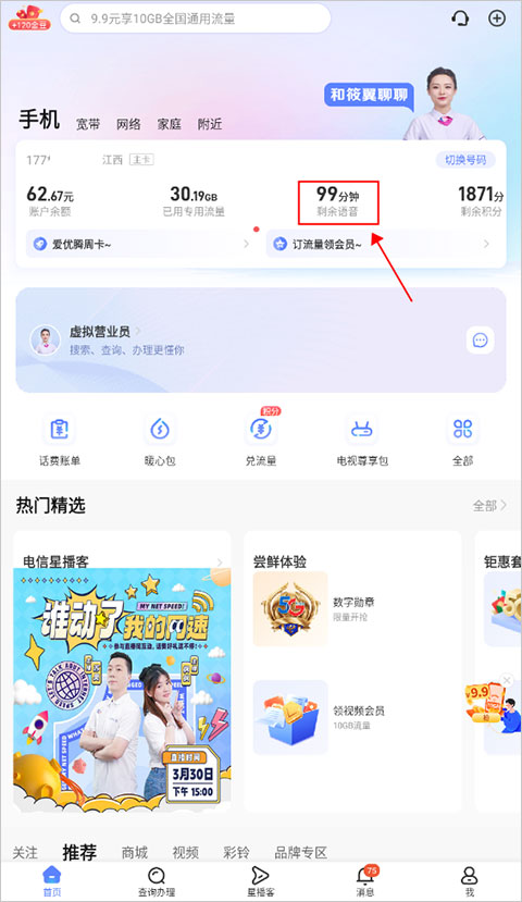 2、抢便宜:一手掌握最新优惠促销活动,靓号、流量、手机抢先购;