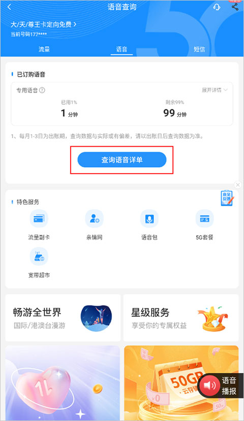 2、进到语音查询界面后,点击下方的“查看语音详单”