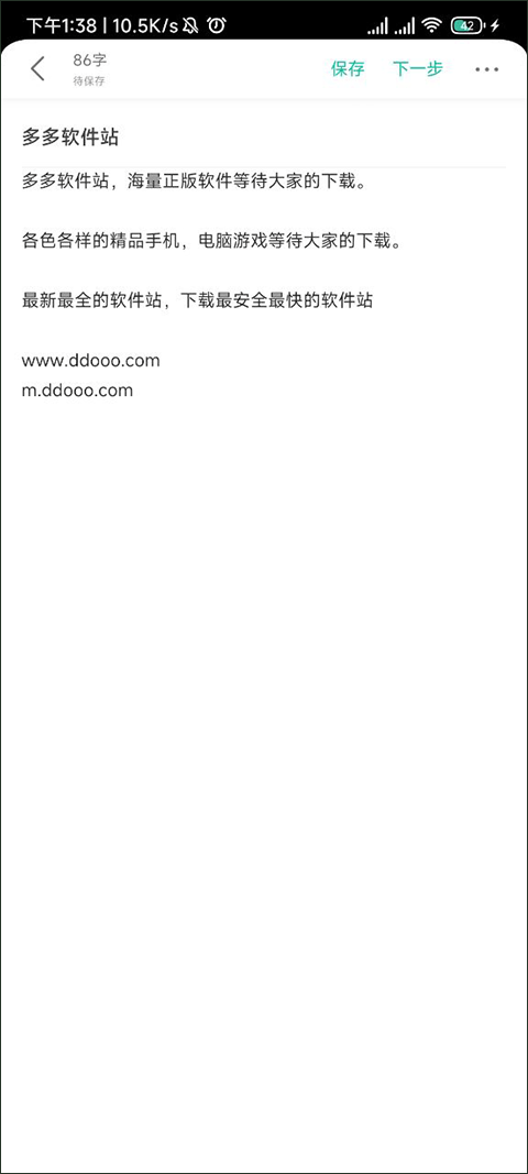4、点击后输入自己的作品标题和文章正文写好之后点击保存和下一步。