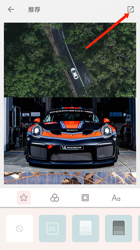 4、而要想编辑出无缝图片的效果,其实只要不添加其他模板就可以了,通过右上角分享按钮即可保存无缝长图。