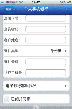 (3)填写相关注册信息,注册卡号,查询密码、客户姓名、证件号码、手机号