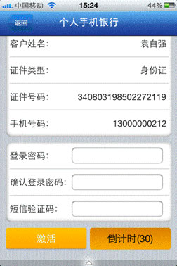 (5)输入登录密码,短信验证码,点击激活