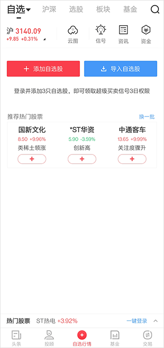 3、在行情模块可以快速查看实时的行情,添加自选股;