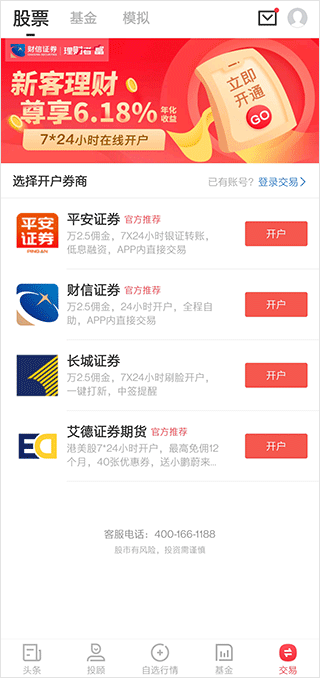 5、在交易模块可以进行开户,基金交易等等。
