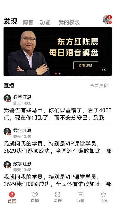 【课堂】名师授课,每个交易日盘中四小时文字直播+盘后语音直播,错过直播,还有课程回放;