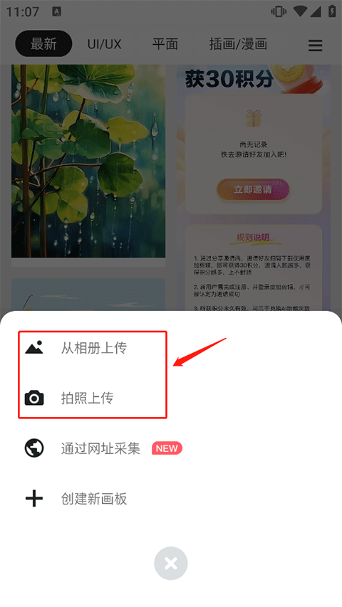 6、最后将该图片采集到刚刚创建的新画板内就完成图片上传啦