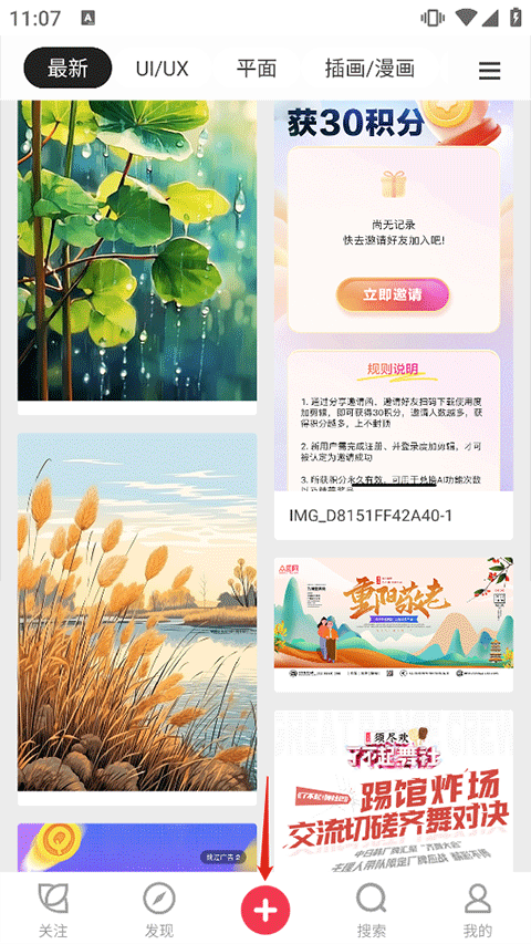 4、关注你感兴趣的人和画板,随时收到来自他们的更新。