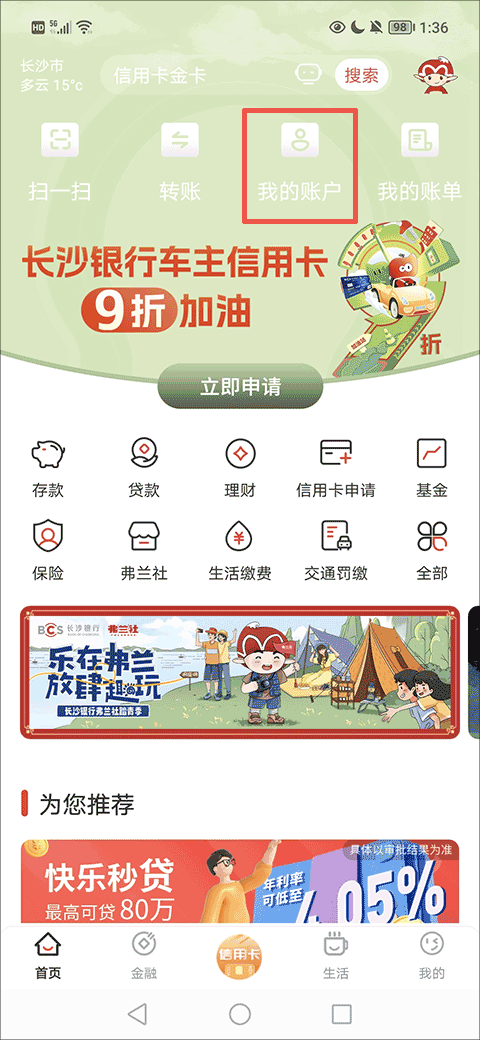 在长沙银行e钱庄app的账户管理功能中,用户可以实现远程开户,享受余额理财、便民缴费、资产管理等金融生活服务,其中便民缴费首创全国车辆在湘违章一站式服务。