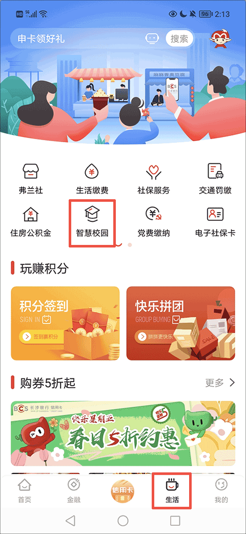 4、或者用户也可以在“生活”界面找到并点击“智慧校园”按钮选项直接进入智慧校园界面进行缴纳学费的操作。