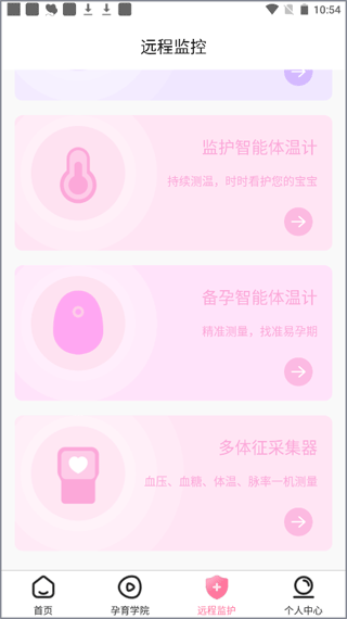 目前远程监护共有三款监护设备,分别是多体征采集器、胎儿监护仪、超声胎音仪、排卵试纸。