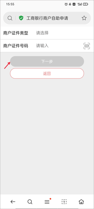 2、这时页面跳转到浏览器上,进入到工商银行商户自助申请页面。