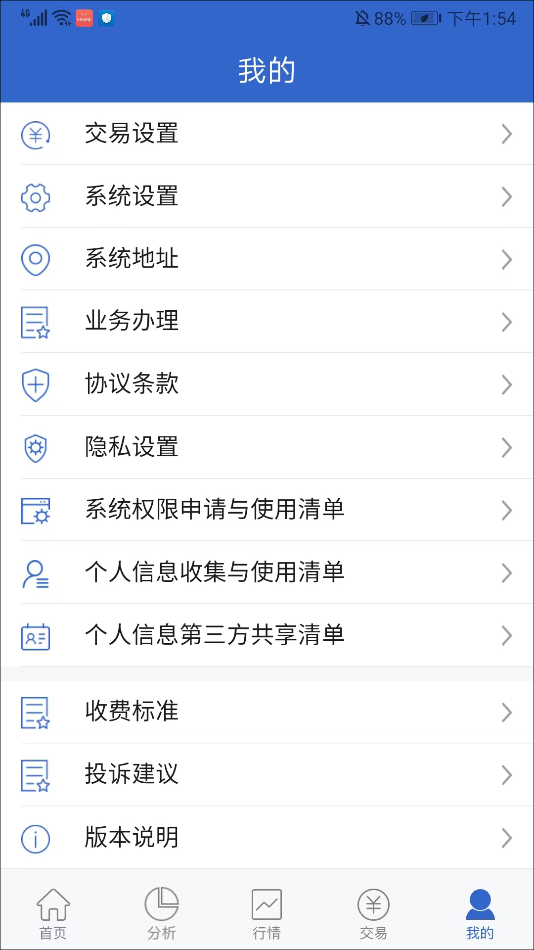 6、在我的界面,可根据自己的习惯进行交易、系统、隐私等相关的设置,以上就是国联期权app的使用教程了。