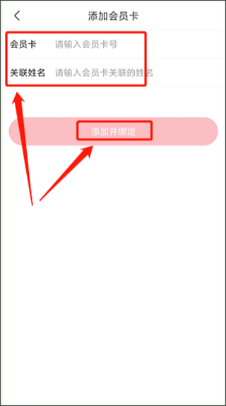 4、进入添加会员卡界面,输入会员卡、关联姓名,点击添加并绑定就完成了。