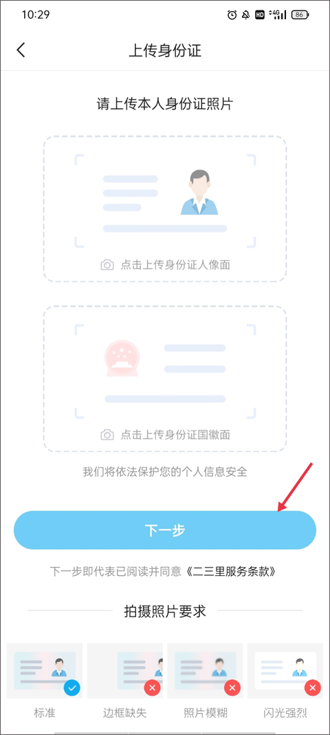 第二步:点击最上边的未验证,上传身份证正反面即可。