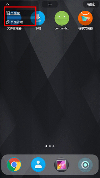 5、这时你可以进行个性化和页面管理对桌面设置;
