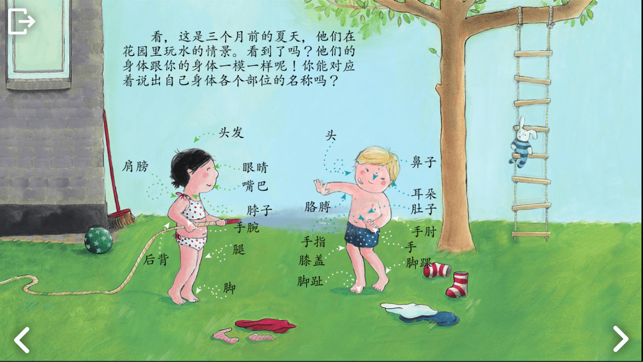 3、图中有两个小人物在对话,你们会通过对话中来了解到身体的结构