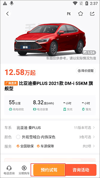 我们先在app选中我们心仪的汽车,点击预约试驾。