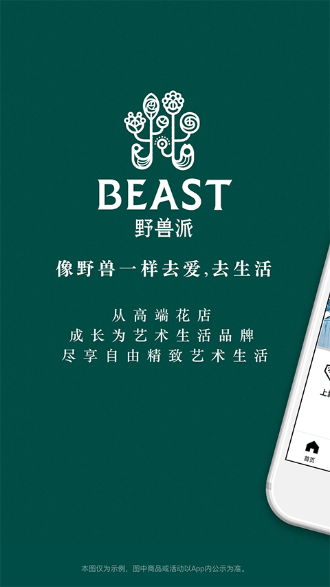 野兽派app是专注艺术生活品牌线上特卖的一款高端品牌O2O销售平台,该平台以独特的品质生活理念为核心,充分联联动线下数十下实体门店支持,提供覆盖花艺、家纺、家饰、餐桌、珠宝配饰、香氛护理6大类目的数十万优质商品,下设野兽派花店、野兽家居廊、野兽小姐、贵妇美容室、野兽精选五大板块功能,可让用户根据自身喜好和需求,自主搜索各类心仪商品快速下单,享受原创设计带来的极致优雅生活体验,同时还可以个性化定制各类服饰家居、花艺礼物,购买各类经典款纪念款系列产品,让生活更加美好舒适,像野兽一样自由生活~