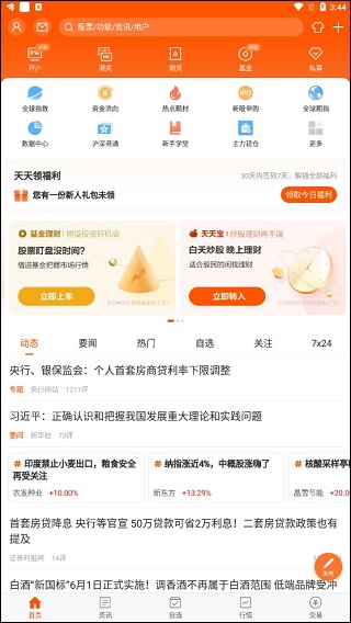 4、首页中不仅展示了动态新闻,其他还包括要闻、热门、自选、关注和7*24小时的详细炒股要领,众所周知,面对国际、国内局势的变化,相应的股票、期货在一定程度上都会上升,下跌,及时的掌握最新新闻咨询报道,可以让你在股市中增加收益或减少损失。
