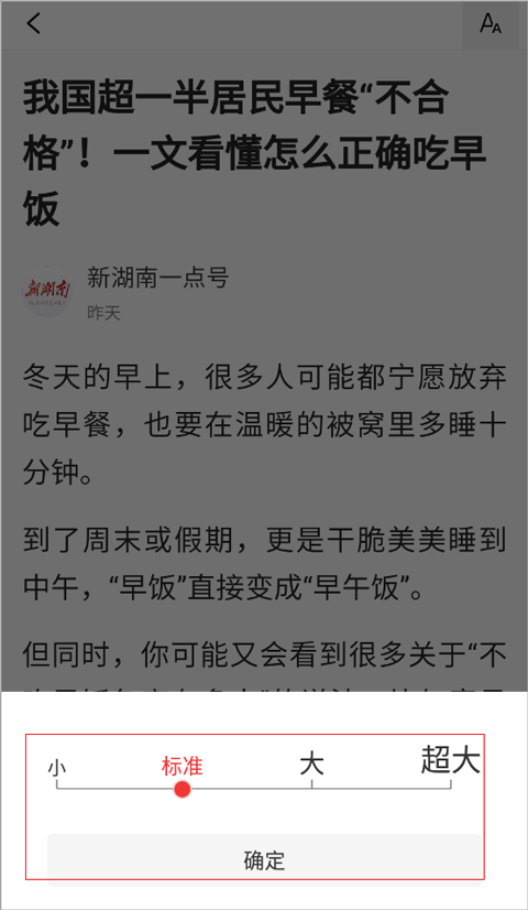 在打开新闻早知道软件之后,如果因为字体太小了你们想要去调整字体让自己看清楚一点的话,你们要做的事情打开一篇你们想要观看的新闻之后,你们就可以看到右上角的地方会有一个【AA】。