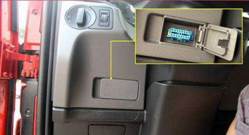1、找到需安装车辆方向盘左下方的OBD接口处。