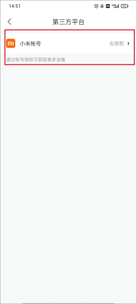 2、这时你会看到一个小米账号,点击右边的去授权。